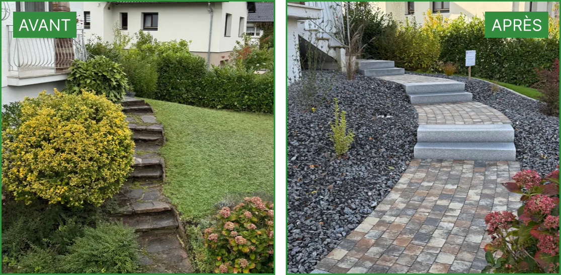 Parcourez notre galerie pour découvrir comment nous transformons des espaces extérieurs en véritables lieux de vie : jardins contemporains aux lignes épurées, végétaux soigneusement sélectionnés, accès harmonieusement intégrés au paysage.